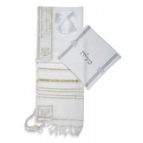 -    Acrylic Prayer Shawl Set with Menorah and Bible Words, White and Gold Stripes – Ateret$42.54 Acrylic Prayer Shawl Set with Menorah and Bible Words, White and Gold Stripes – Ateret$42.54