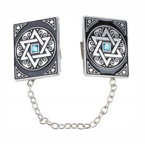 Prayer Shawl Clips and Chain, Colorful Breastplate Stones - Nickel Plated