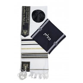 Acrylic Prayer Shawl Set with Menorah and Bible Words, Black and Gold Stripes – Ateret$42.54 -