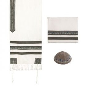 Prayer Shawl Set with Decorative Embroidered Gray Stripes - Yair EmanuelSize: 20" x 75"$153.33 -