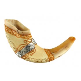 While some people prefer a simple natural look of the shofar even for decorative purposes, many people like to have a shofar that has been adorned with decorative fabrics, metals, stones and paintings. The pomegranate, a symbol for the Jewish new year, Rosh Hashana, is a particularly popular decorative motif often hand painted in bright crimson red on the bottom half of the shofar. Another common decoration is a metal silver band of Jerusalem winding around the circumference of the shofar. In addition to the more popular designs many artists are available to custom design a shofar according an individuals particular taste.