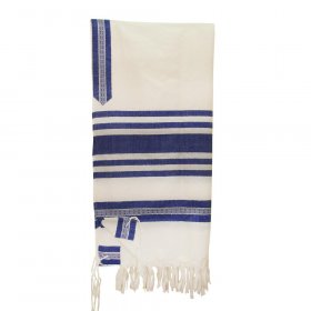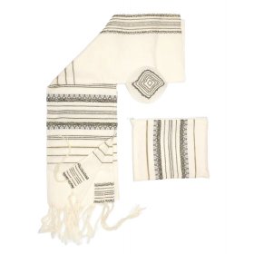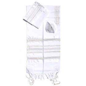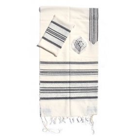 White Wool Handwoven Prayer Shawl Set with Silver and Blue Stripes - Gabrieli$326.81 - $493.57FREE delivery -