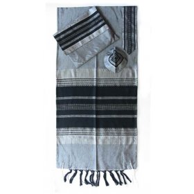 Gray Handwoven Cotton Tallit Prayer Shawl Set with Black and Silver Stripes - Gabrieli$326.81 - $493.57FREE delivery -