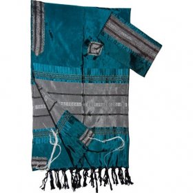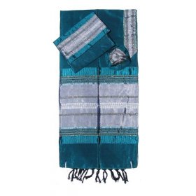 Teal Silk Handwoven Tallit Prayer Shawl Set Blue and Silver Stripes - Gabrieli$326.81 - $493.57FREE delivery -
