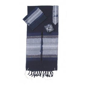 Handwoven Dark Blue Silk Prayer Shawl Set with Silver Stripes - Gabrieli$326.81 - $493.57FREE delivery -