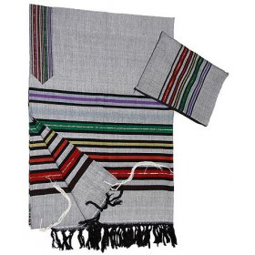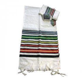 White Wool Handwoven Prayer Shawl Set with Joseph Coat Stripes - Gabrieli$326.81 - $493.57FREE delivery -