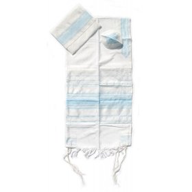White Silk and Light Blue Stripes Handwoven Prayer Shawl Set Set - Gabrieli$326.81 - $493.57FREE delivery -