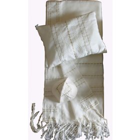 Your hand-made tallit arrives ready for use with the kosher tzitzit appropriately attached in each of the four corners. Many of the tallitot are available in the smaller size, suitable for those who want an “over the shoulder” scarf tallit. A number come with matching cap and bag, adding dignity and prestige.